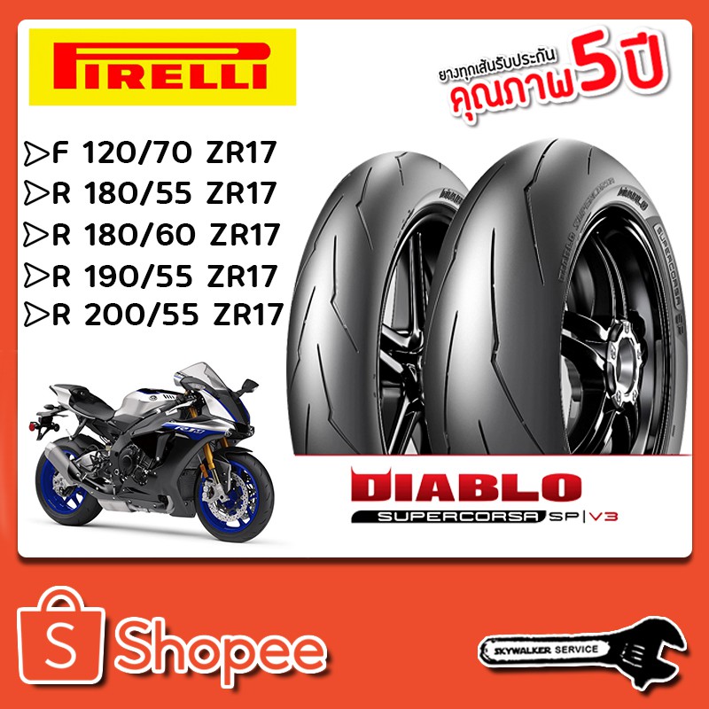 Pirelli diablo supercorsa sp v3 190/55 zr17 75w. Pirelli diablo supercorsa v3 190/55zr17. The latest generation of the pirelli diablo supercorsa sp v3 tires improves performance with an pirelli's experience outfitting wsbk with track tires makes the diablo supercorsa sp v3 the perfect high performance tire for your high performance motorcycle. Click to see 1 more pictures. Pirelli diablo supercorsa sp v3 tires 3115100.